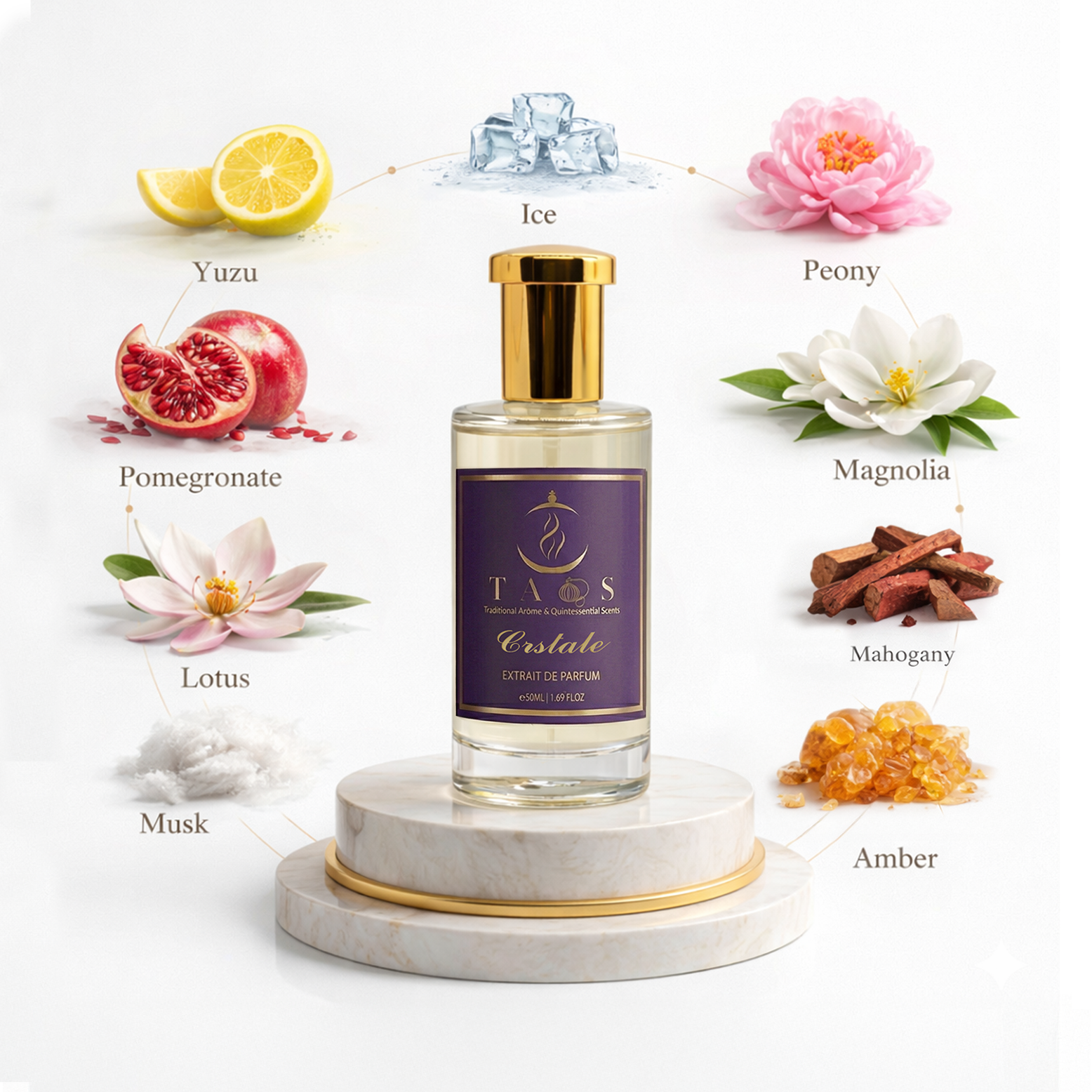 Radiant, delicate, and effortlessly feminine, Crystalé sparkles with freshness and elegance. Yuzu, pomegranate, and an icy accord create a luminous, uplifting opening. A soft floral heart of peony, lotus, and magnolia blooms gracefully, adding airy charm. Musk, mahogany, and amber provide gentle warmth and sensual depth. Crystalé is timeless and beautifully captivating — ideal for women who love light, graceful fragrances that feel fresh, refined, and irresistibly elegant.
