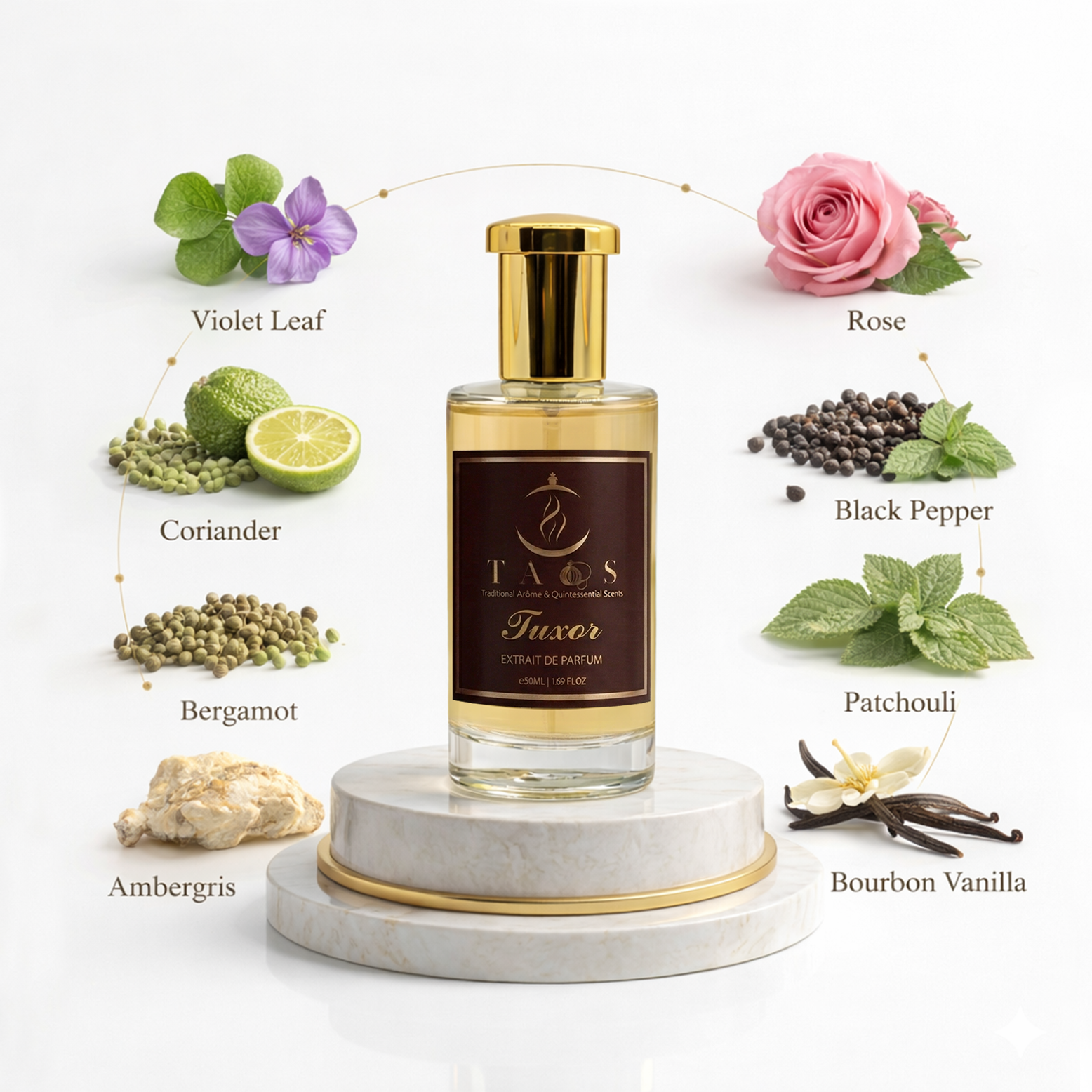 Elegant, sharp, and irresistibly refined, Tuxor captures timeless sophistication. Violet leaf, coriander, and bergamot provide a crisp, slightly spicy opening. The heart of rose, black pepper, and lily-of-the-valley introduces smooth depth and character. Patchouli, bourbon vanilla, and ambergris create a warm, sensual base. Tuxor is sleek, confident, and long-lasting — perfect for evenings, formal settings, and moments requiring polished presence.